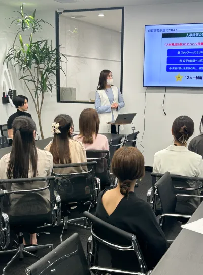また、看護師による患者様向け美容セミナーや遠方の患者様のための地方ポップアップの開催によりスタッフ自身の「プロとしての自覚・技術」を育成。スキンケア製品の開発など、クリニック内の業務を超えたワクワクするような経験ができる環境を作っています。